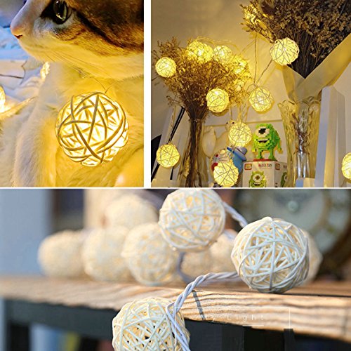 PREMIUM QUALITY STRING LIGHTING: The waterproof grade of the battery box is IP44. 10 LED rattan ball lights are of good heat management, providing a longer lifespan. Measures 5 feet in length long enough for your decoration.
