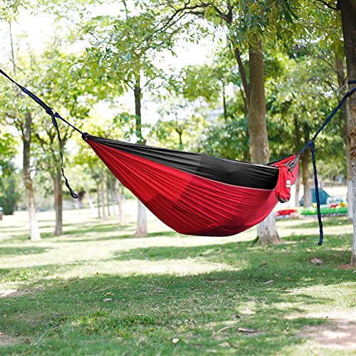 Double Camping Hammock with Tree Straps, Mersuii Lightweight Portable Parachute Nylon Hammock for Backpacking, Travel, the Beach and Your Backyard