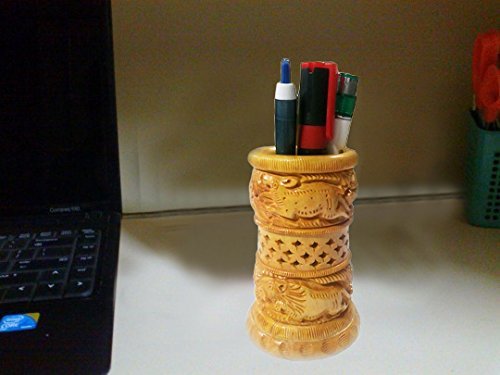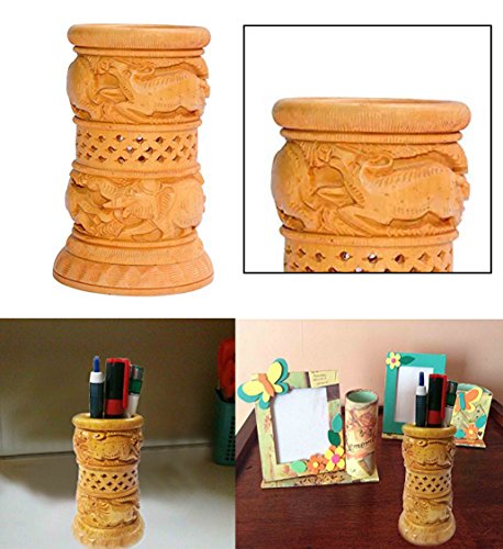Special valentine day Present,Wooden Carving Round Pen Stand, Pen / Pencil Holder, Pen Stand and Office Desk Accessories Organizer, Pen and Pencil Holder Stationery Storage Box, Size 4 Inch