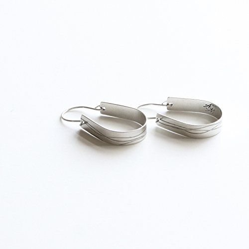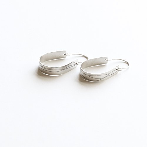 -. Brand : bluehourdesigns -. Department : Women -. ProductGroup : Guild Product -. ProductTypeName : GUILD_JEWELRY -. Title : Modern sterling silver hoop earrings patterned with embossed lines and oxidized to a light charcoal finish - "Multiple Paths Earrings"