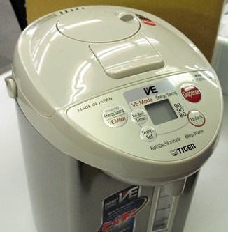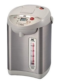 -. Feature : Tiger Micom 3-Liter Hot Water Kettle is loaded with advanced options for cleaner, better tasting boiled water for making tea / Re-boil option for quick boiling. 2 energy saving sleep timer settings Motor-assisted splashless pouring Descaling cycle for cleaning accumulated mineral deposits Adjustable temperature warming plate / Water container coated with nonstick flouroresin. Lid is removable Detachable magnetic power cord prevents tip overs from accidental snags or trips LCD control panel with large, soft-touch central dispenser button 3 temperature levels: 176° F, 194° F and 208° F