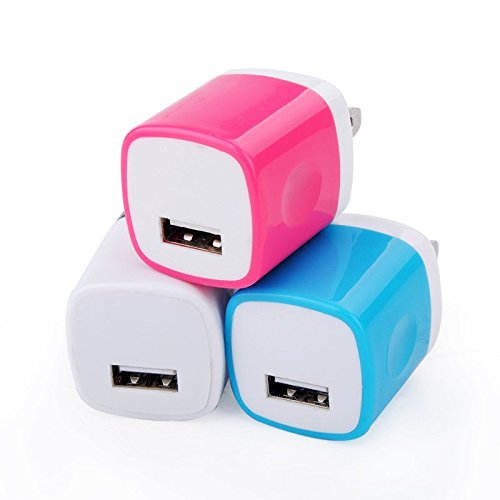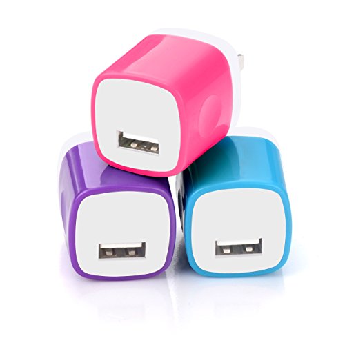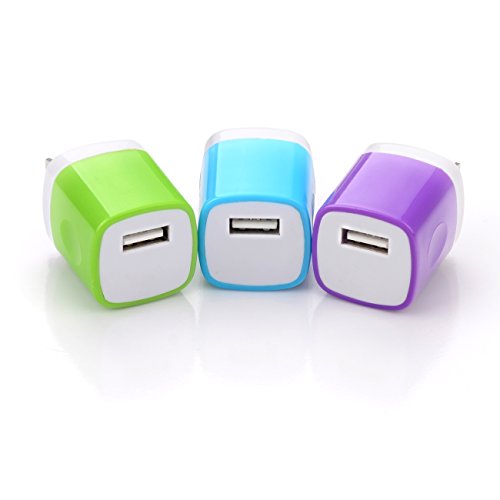 Wall Charger,MaxMall Bundle of 3 Universal USB AC/DC 1.0A AMP Travel/ Home Wall Charger Power Adapter for iPhone 6 6 Plus ,5S,4S,Ipad, iPod touch ,Tablet,Samsung Galaxy S6,S5,S4,S3 ,Note 4/ 3/ 2 ,HTC, Motorola Nokia,Google,LG and More-(Green/Purple/B