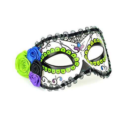 Mask-It 48010 Mask-It (Mau63) Mask-It Lime, Blue, black & Purple Day of The Dead Half Mask 7.5x3.5" , 1Pc