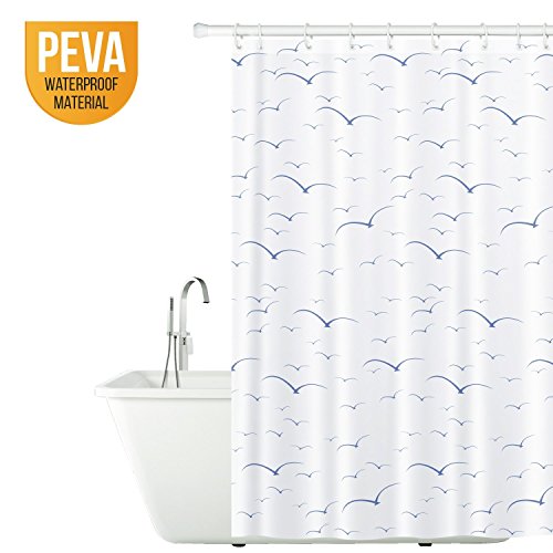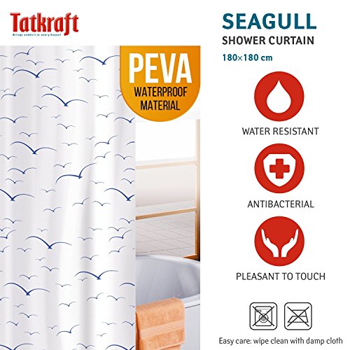 Tatkraft Seagulls Peva Shower Curtain Liner 180X180 cm Waterproof 12 Rings