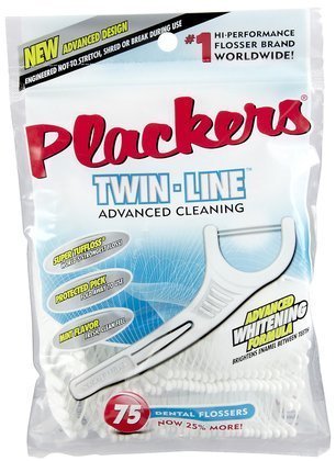 Plackers Twin Line Whitening Floss Picks-75 ct (Pack of 3)