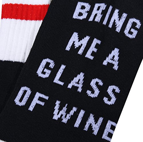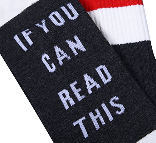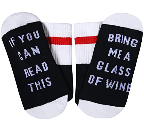 -. Feature : PREMIUM QUALITY MATERIAL - Our funny socks are made from 80% cotton, 15% acrylic, and 5% spandex. Besslly wine beer coffee socks are comfrtable, breathable and durable. Smell free, hygroscopic and sweat releasing, medium thickness, machine washable, hold up well in the laundry. / FASHION & FUNNY DESIGN - 'If you can read this' 'Bring me some wine'. Party hosiery will make your friends giggle, here you go! Combed cotton will keep your feet warm and cozy. All the words on the bottom are stitched directly into the socks instead of an iron-on transfer, so they won't peel off. / SUITABLE SIZE - These wine socks fit US shoe sizes 6 to 11, which can be stretched. One size fit for most men and women. / BEST VALUE - Our coffee socks are great as a gift for mom, dad, girlfriend, boyfriend, husband or wife, a gift for a wine lover, coffee lover, beer lover, party favor, or a present for yourself. / GUARANTEE - Your purchase is fully protected when you order today. If you are not satisfied with your novelty socks, contact us any time, we will get you back within 24 hours try our best to make things right!