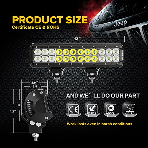 12 Inch dual row of original CREE LED chips provides super broad viewing area, Spot (30 Degree) & Flood (60 Degree) Combo create the best light beam.