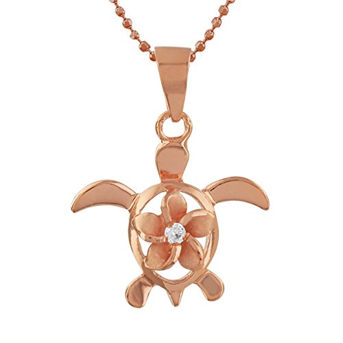 -. Title : [ハワイアン シルバー ジュエリー] Hawaiian Silver Jewelry ホヌ (亀) × プルメリア ネックレス ジルコニア付き ピンクゴールド トーン シルバー925 [インポート]