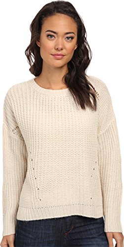 The farewell sweater is designed as a crew neck pullover, complete with exaggerated ribbing at front. The back is smooth, providing interesting contrast.