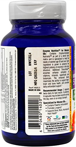 -. Feature : ENZYME ACTIVATED NUTRIENTS: Enzyme Nutrition for Women 50+ contains Enzyme Activated Nutrients (EAN) as part of a whole food matrix. It is personalized to meet the unique needs of today's women 50 and up. Each ingredient is grown to preserve the highest potency of enzymes contained within the food structure.