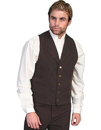 Product Description Look your cowboy finest in this frontier-inspired canvas vest from Rangewear by Scully apparel Rangewear is a part of the Old West Collection by Scully. Vest sports an adjustable back tie. Imported. Sizes: S(38), M(40), L(42-44), XL(46-48), 2XL(50). 0
