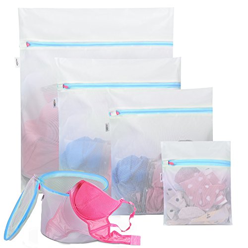 Set of 5 Mesh Laundry Bag Plusmart Lingerie Bags for Laundry Travel Wash Bag for Bras,Delicates, Blouse, Hosiery,Stocking, Underwear,Sweaters-1 extra large, 1 large,1 medium ,1 small&1 bra bag