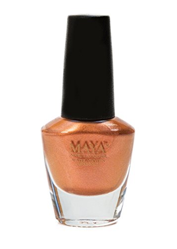 Pretty Penny. A shimmery metallic copper. Each bottle comes in its own individually packaged box! MAYA was created to be a durable, high-quality nail polish that would be safe to use and promote nail health. The result is one of the healthiest nail polish brands in the market. MAYA is 5-free (being free of 5 of the most harmful, commonly found nail polish ingredients (some of which are known to cause cancer and reproductive problems): toluene, formaldehyde, debut phthalate (dB), formaldehyde resin and camphor, Maya is thus one of the safest nail polishes to use during pregnancy. MAYA is also free of animal derivatives, gelatin and intoxicant alcohol. Maya’s proprietary formula is breathable, allowing water and oxygen to permeate the nail polish and reach the surface of the nail. This results in stronger and better conditioned nails. Breathability also facilitates nail growth for weak or damaged nails. MAYYA is: Physician-tested, Peta-certified: Free of animal testing and vegan-friendly, Gluten-free, Halal, Wudu-friendly, and Kosher. MAYA also dries within minutes. Compared to water-based breathable nail polish, Maya is far more durable and long-lasting. Our selection of 24 vibrant colors include nudes, top coats, mattes and glossies.Feature