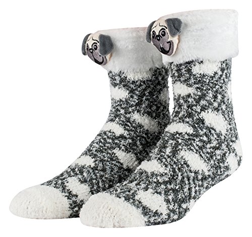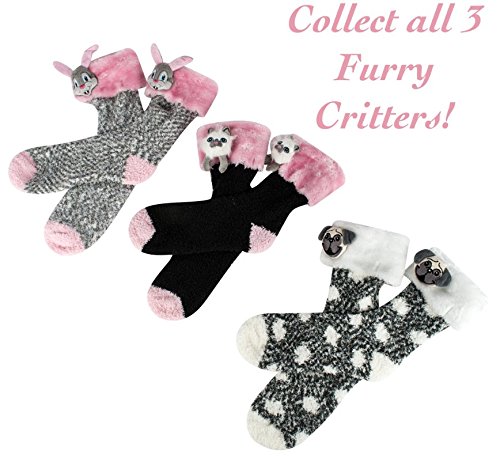 -. Feature : Super Soft - Yummy soft poly and spandex blend of fuzzy and fluffy socks. Soft enough to sleep in. / Warm and Comfy - These fluffy socks will stay comfortable and keep your feet warm. Perfect for the cold weather; protect your feet from cold floors in your home, hospital, winter weather, or a spa with these soft socks. / Plush Top- Soft furry top with a 3D character pillow. The folded over sock cuff has a plush top that adds to the warmth and the design. When straightened the top will face forward, but you can twist the socks to the side to wear the character tops facing outwards. / Tall Socks - Crew silhouette to keep you warm. Wear them with boots, as slippers, or stuff them with gifts! ONE SIZE fits most. / 3D Cozy Critters - Go for the Christmas themed socks Santa, Elves, Snowmen, or Reindeer. Or turn to the cute animal socks, Dogs, Cats, and Bunnies. Turn the character forwards or show them off by slipping it to the side.