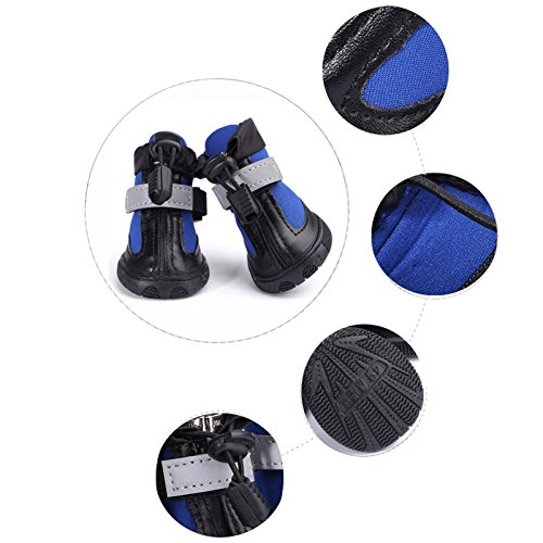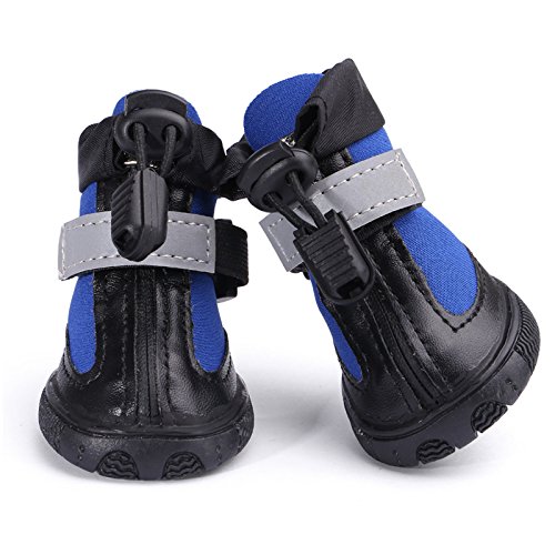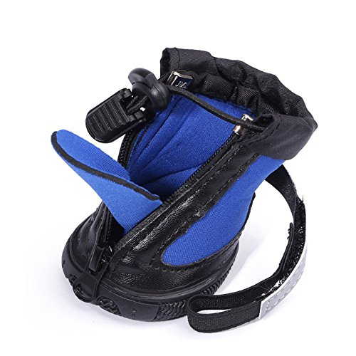-. Binding : Misc. -. Brand : SimLife -. EAN : 0702658127015 -. Feature : High quality rubber sole: Our shoes have a strong sole ensure that the grip on most surfaces and protect the dog's paw from harm / Waterproof Material : Made of water resistant material, Not only bring more comfort and keep your love dog clean when they running outside / Soft Inside Material: soft cotton inside material make your dog more comfortable / Fit the dog's paw:This shoe features a zippered opening, a adjustable Velcro and elastics to nsure a tight fitting fit that will not come off easily and keep your dog safe. / Size : According to the image of the Operation Process measurement; Measure paw Length & Width for best fit. If the paw is in-between two sizes, select the larger size. See "Size Chart" with actual size of boots. -. Label : Winsmooth -. Manufacturer : Winsmooth -. PackageQuantity : 1 -. ProductGroup : Pet Products -. ProductTypeName : PET_SUPPLIES -. Publisher : Winsmooth -. Size : #5(2.09" 1.85") -. Studio : Winsmooth -. Title : SimLife Blue Dog Shoes Water Resistant + Anti-slip Rubber Sole with Reflective Velcro 4PCS (#5(2.09" 1.85")) -. UPC : 702658127015