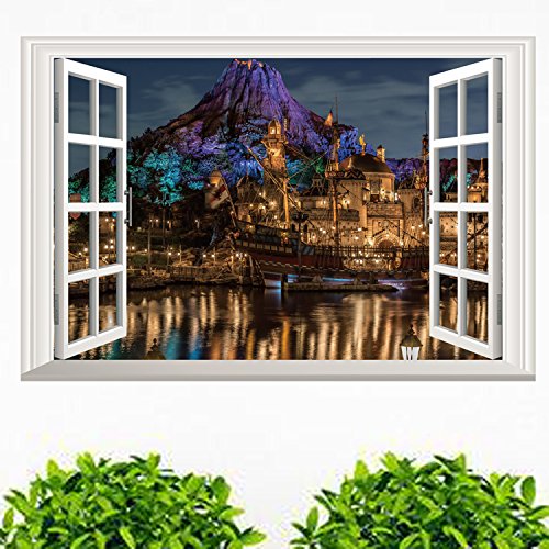 -. Feature : Sticker size: 23.6 inch*15.7 inch/60*40cm. Compatible with any smooth surface / Material: PVC/Vinyl. Environmental protection, non-toxic, no harm to children / DIY design: Set your imagination free and decor your wall in your own way / Installation: You can apply, remove, reposition, and reuse without leaving damage or residue on the wall. Super easy / 3D Window View Mural Art Poster Sticker