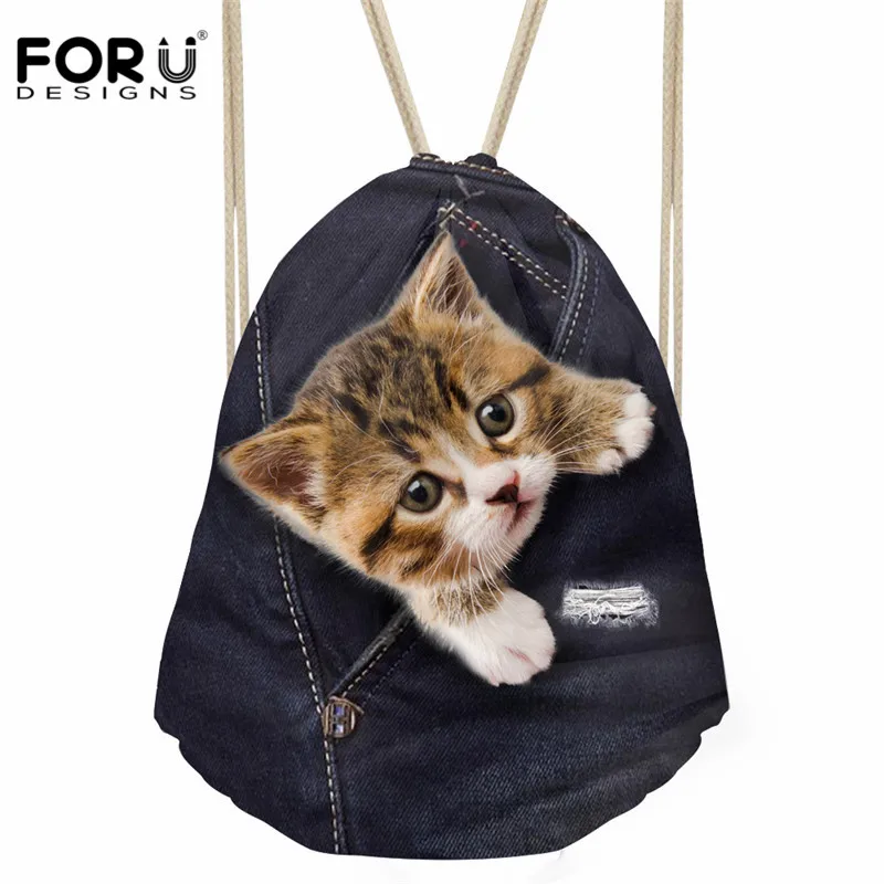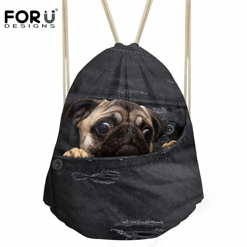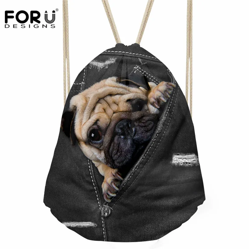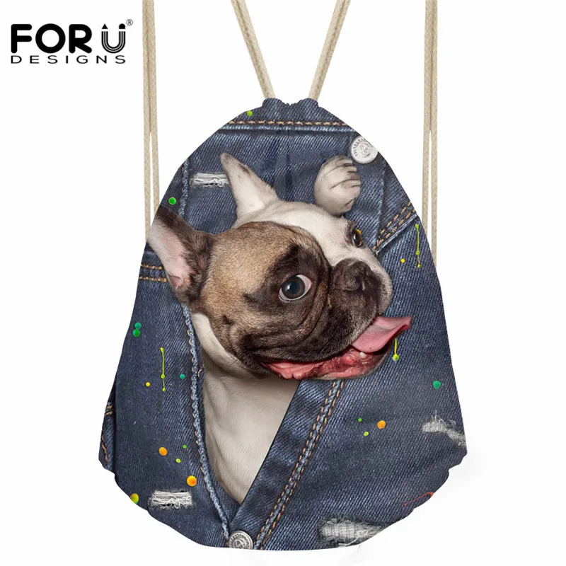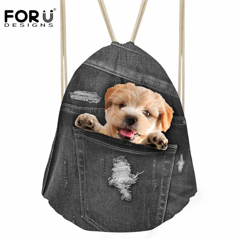 pattern:cat dog print drawstring bag