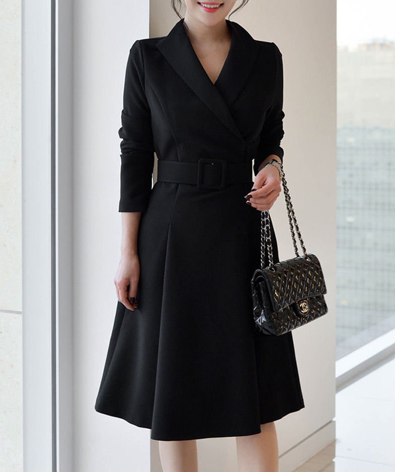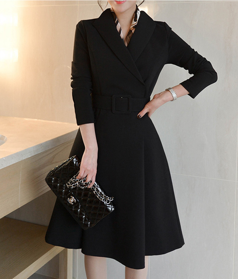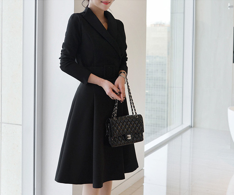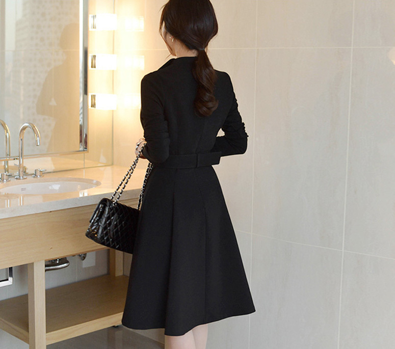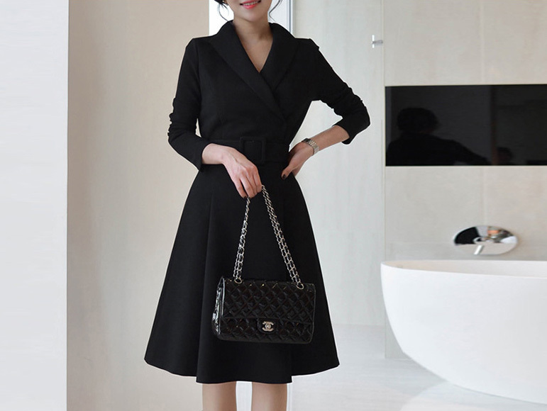 ブラックでまとめたデザインが、上品で大人っぽい印象の長袖膝丈ワンピースです。