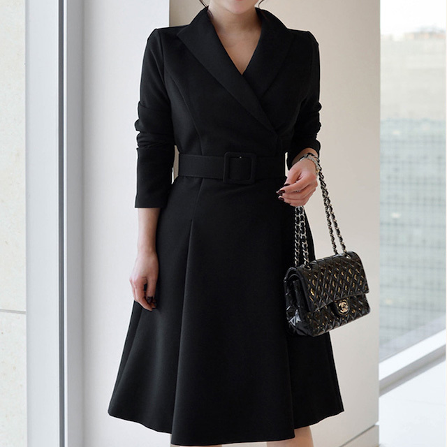フォーマルにも使用でき、通勤や女子会などでも簡単にコーデが完成するデザインの一着です。
