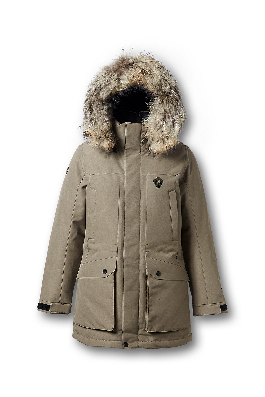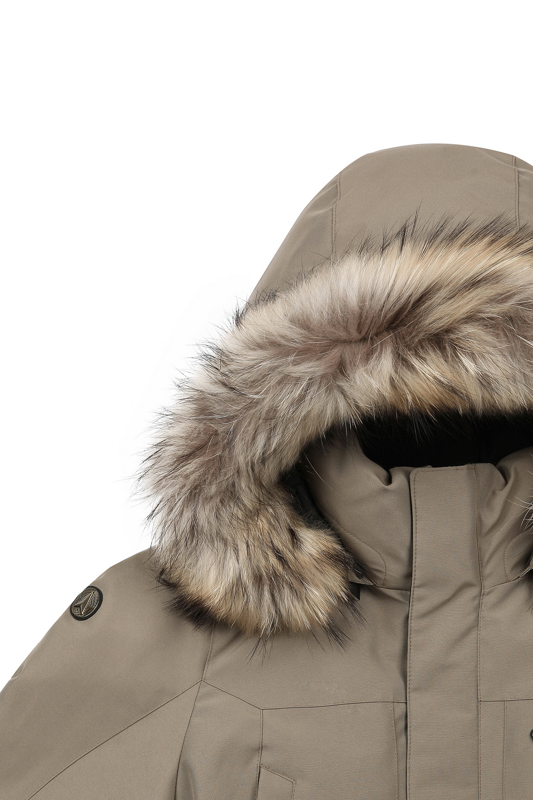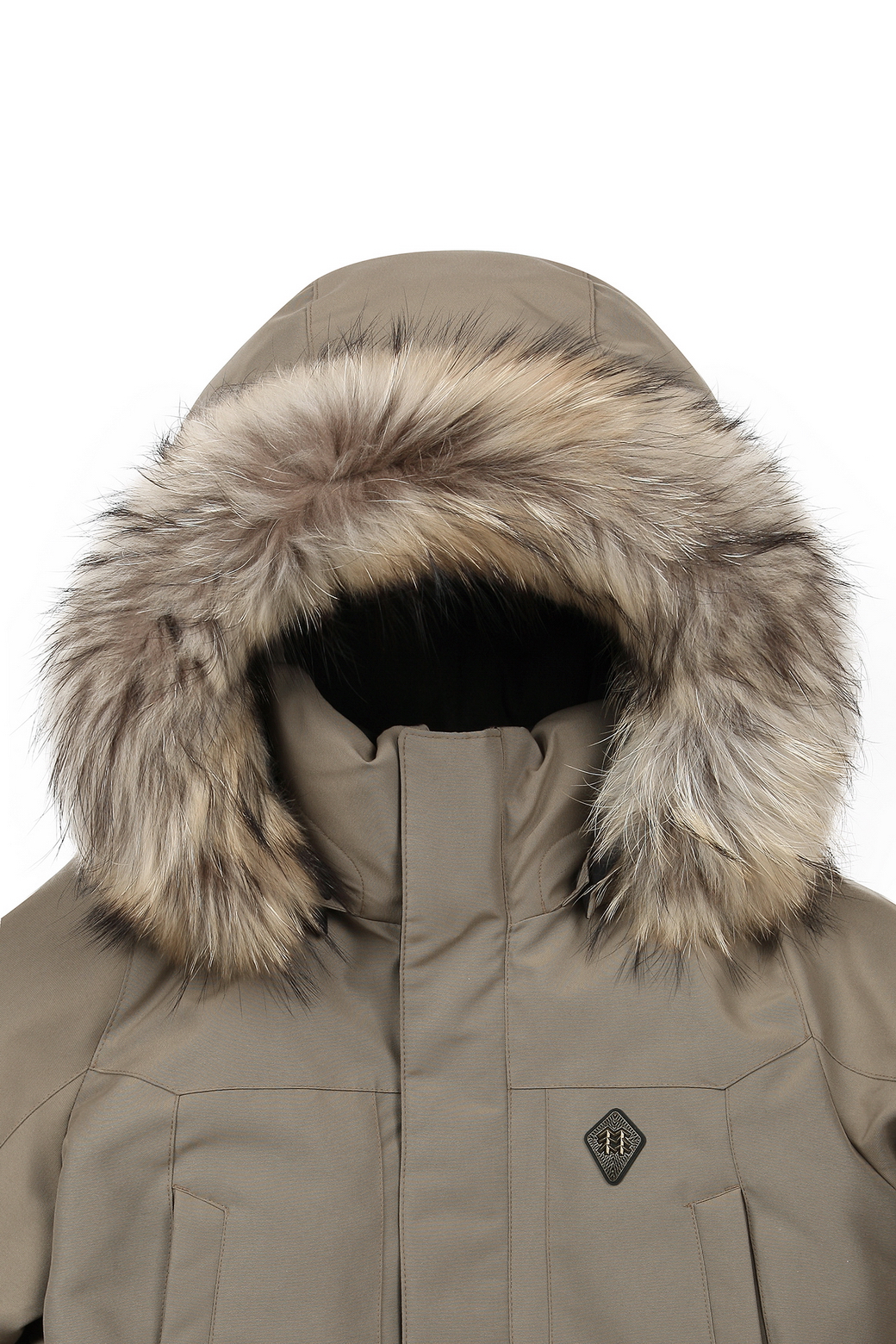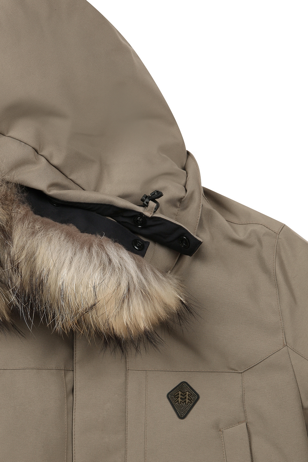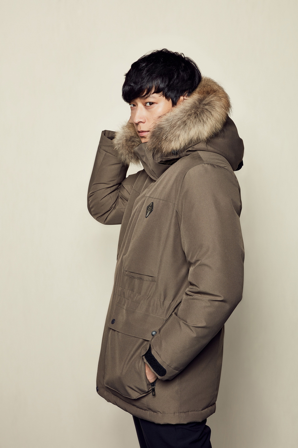 - 탈착이 용이한 후드 디자인에 핀라쿤 트리밍으로 보온성은 물론 고급스러움.
