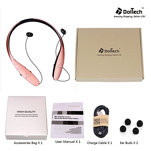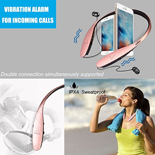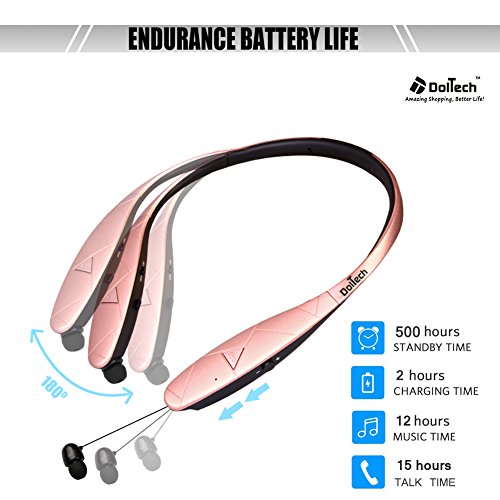 Title : Bluetooth Headphones, DolTech Stereo Wireless Headset Neckband Retractable Sport Earbuds with Mic Noise-Cancelling, Sweatproof Bluetooth 4.1 for iPhone IOS Android (980sRosegpld)
