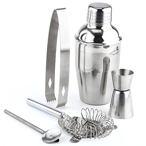 -. Feature : STAINLESS STEEL: Premium stainless steel cocktail bar set,simple cocktail set, very practical, in the home bar. / 5 IN 1 SET: Each set includes a Cocktail Shaker, Double Jigger, Ice Tong, Strainer Screen, Straw Spoon, create your favorite drinks in style. / BE A PROFESSIONAL COCKTAILER AT YOUR HOME: Creating cocktails from a great variety of spirits, experience the improved taste of Scotch, Cognac, Port, Tequila, Whiskey, Bourbon, Vodka, Gin, Rum, Brandy, , Liqueurs and Mixers like never before / Easy to clean: All of them are made from stainless steel for strength, durability and easy care. / A perfect gift for your family!