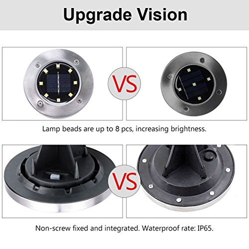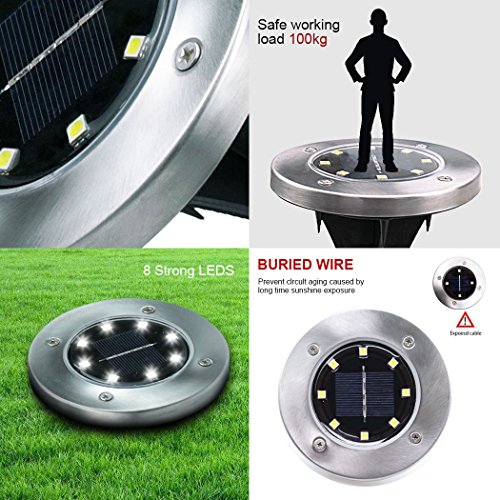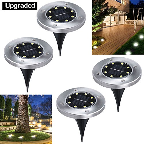 Bokemar Solar Ground Lights Outdoor Decorative Garden Pathway Light 4 Pack Bright Garden Path Light Stainless Steel White LED Lighting for Yard Patio Walkway Driveway