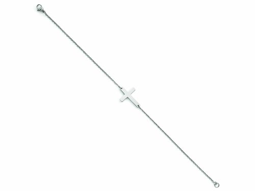 -. Title : Stainless Steel Polished Sideways Cross Anklet