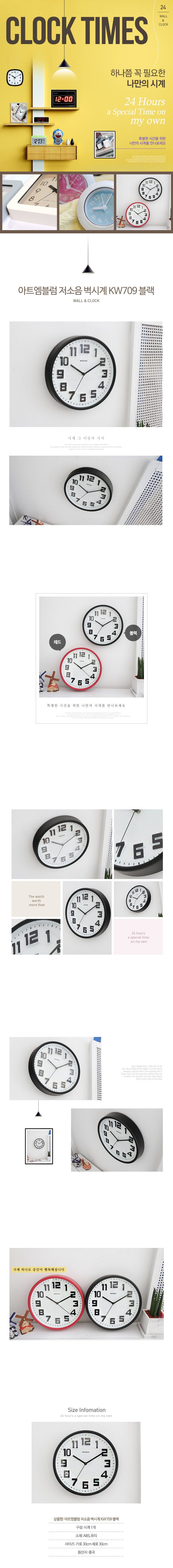 - 품명 및 모델명아트엠블럼 저소음 벽시계 KW709 블랙