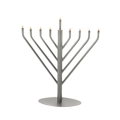 Classic Pewter Tone Electric Hanukkah Menorah with Clear and Blue Bulbs