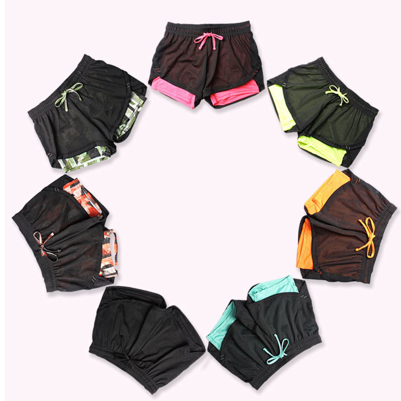 Large Size Women Yoga Sports Shorts Double Layer Inner Lining Running Shorts Summer Gym Fitness Quick Dry Drawstring Sportswear