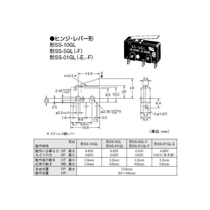 원본상품명: オムロン(OMRON) SS-5GL2 超小形基本スイッチ(高耐久性) (ヒンジロラレバ形) はんだづけ端子 1cタイプ(投形) NN
