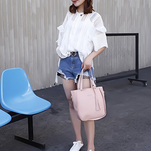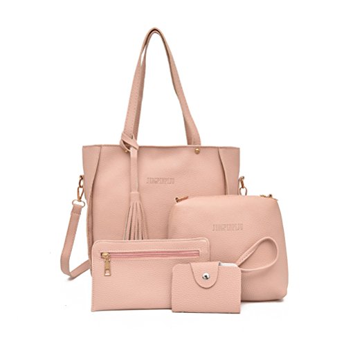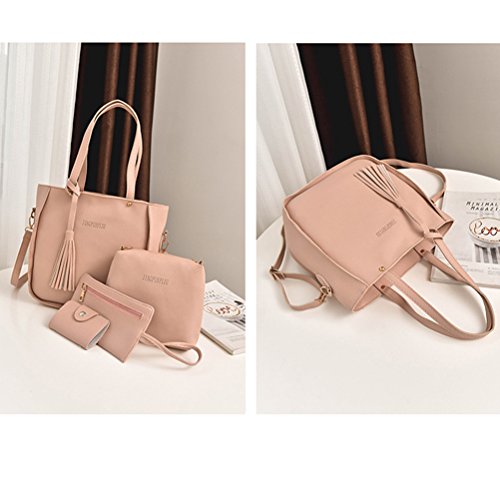 Features - Color: Light Pink. - Material: PU. - HandBag Size: Approx. 24 x 27 cm / 9.4 x 10.6 inch. - Crossbody Bag Size: Approx. 20 x 18 cm / 7.9 x 7.1 inch. - Clutch Bag Size: Approx. 20 x 11.5 cm / 7.9 x 4.5 inch. - Card Bag Size: Approx.11 x 6.5 x 1.5 cm / 4.3 x 2.6 x 0.6 inch. - A handbag with an extra strap, can carry in hand or on shoulder. - A crossbody bag with a detachable strap, also can be a clutch bag without the strap. - A zippered clutch bag for daily use, perfect for temporarily go out, such as take a walk and so on. - A card bag for you to collect your cards, like identity card, bank card, bus card, etc. - Perfect handbag choice and nice gift options for female friends.
