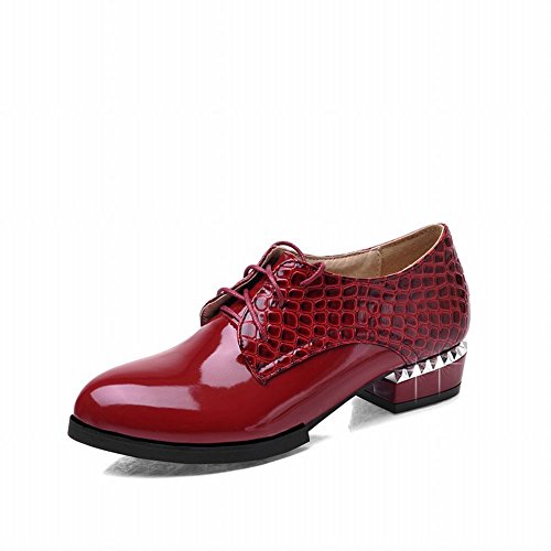 -. Binding : Apparel -. Brand : Latasa -. Color : Red -. Department : womens -. Feature : PU Leather / Manmade Material / Heel Height:1.2'' / Listing images were taken off actual product, however, actual color may differ slightly due to different monitor display setting. -. ProductGroup : Shoes -. ProductTypeName : SHOES -. Title : Latasa Women's Fashion Faux-snakeskin Lace-up Chunky Oxfords Shoes