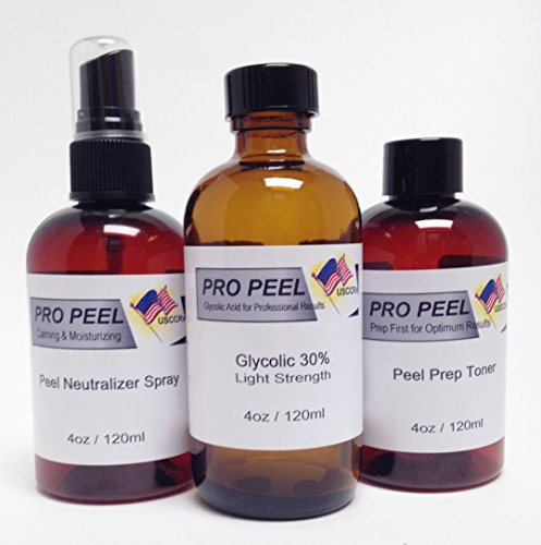 -. Feature : Buy Direct from the USA Licensed Compounding Pharmacist, No Middle Man, All custom compounded products are prepared, packaged, labeled and shipped direct to you by us, in small batches and guaranteed to be the freshest product available. / Peel Prep Solution (4oz): Applying Our Solution P.R.Ior to using a chemical peel is essential for achieving optimal results. Our Solution works by removing any oils and product residue from the skin, and lowers pH levels to allow the peel to more deeply penetrate the skin for maximum effectiveness. / Medical Grade 30% Glycolic Skin Peel (4 oz): Designed for Individuals who have chronic disorders, such as persistent hormonal acne and enlarged pores. The far-reaching peel penetrates beyond the epidermis into the collagen-rich dermis. The mild to moderate peeling helps to improve, clear and beautiful a more youthful looking skin! / Peel Neutralizer Spray (4oz): Our Neutralizer Solution is formulated to stop the acid in the chemical peel from continuing to exfoliate the skin. This returns the skin to a normal, healthy and balanced pH level, cooling and calming your skin to help it recover from the effects of the peel. Detailed Application Instructions are included / All-Natural Green Technology, We Add No Petrochemicals, Parabens, Fillers, Stabilizers, Animal Products or Peg 6-8, to any of our chemical peels. Glycolic Acid is a non-toxic chemical exfoliant naturally found in sugar beets, unripe grapes and sugarcane.