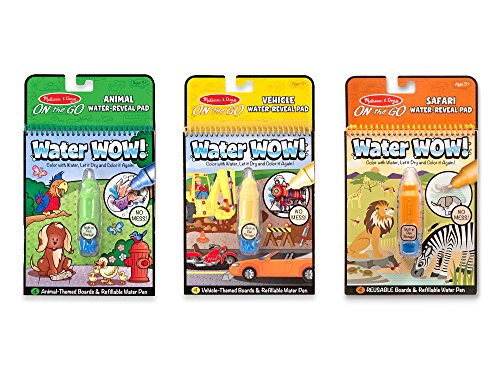 No-mess painting for kids! This exciting paint-with-water coloring book includes four reusable pages and a refillable water pen. Simply use the pen to color in each scene--details and vibrant color appear with every stroke! Then let the page dry to erase the pictures and fill it in again and again. This vehicle-themed book includes four scenes to color, and a search-and-find activity for each scene. The chunky-sized water pen is easy for kids to hold and stores neatly right in the front cover, so Water WOW books make ideal travel activity books and travel toys for kids!Feature