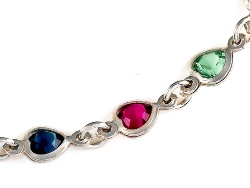 -. Title : 10 Inches Hearts Ankle Bracelet with Simulated Stones Sterling Silver