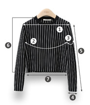 尺码 ①肩宽 ②胸围 ③袖臂围 ④袖口围 ⑤袖长 ⑥衣长 ⑦下摆围