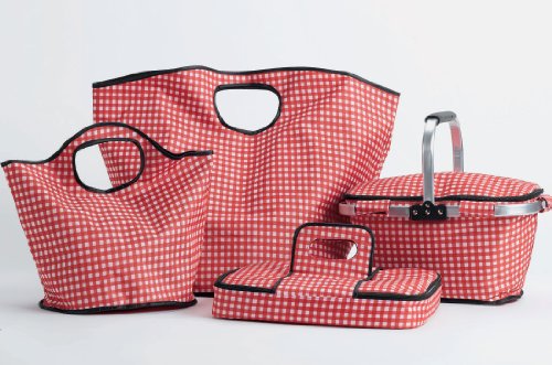 DII Insulated Market Basket or Picnic Tote, Perfect for Holidays Parties, Farmers Markets, BBQ's, Grocery Shopping, Potlucks, To Go Lunches, Craft/Dish Storage & Monogramming - Checkered Red/White