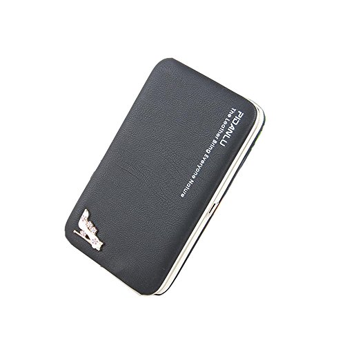 -. Feature : Material: PU constructed, provides perfect protection for your phone from scratches, finger P.R.Int, dirt and daily wear and tear / Detailed Size: 7.3(L) * 4.1(W) * 1.1(H), 18.5X10.5X2.8 cm, owning 6 card slots, 1 zipper coin pocket and 2 cash/bill pockets, 1 phone holder for most smartphones phone up to 5.5 inches such as iphone 6 Plus / Exquisite high heels pattern shows sweet temperament / Auto-magnetic flap top design with an integrated snap button closure, keeping phone more security / It can be used as a clutch wallet or a phone bag, detachable wriststrap for carrying convenience, perfectly fits for working, shopping, dating, party, etc