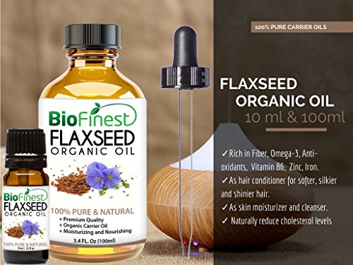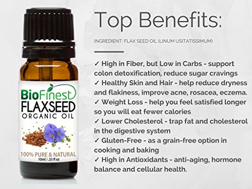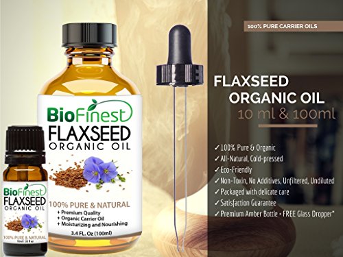 BioFinest Flax Seed Organic Oil - 100% Pure Cold-Pressed - Premium Quality - Best Moisturizer - Rich in Omega-3/ Fiber/ Antioxidant - Nourish...
