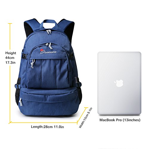 -. Brand : Mountaintop -. Feature : Dimensions: 11.0" x 5.1" x 17.3" (L x W x H); Capacity:25L; Water-resistant polyester fabric / Heavy duty two-way YKK metal zippers across the backpack are convenient to operation on whichever side you prefer. / OCCASION: This fashion casual backpack is perfect in any occasion, such as travel, school, fitness, hiking, camping, cycling,etc. / COMFORTABLE: Breathable mesh shoulder straps with plentiful sponge padding help relieve the stress from your shoulder. The length of the shoulder straps is adjustable. / MULTI COMPARTMENTS: This backpack has a roomy main compartment with a padded sleeve for laptops up to 15.6 inch, 3 front zipper pockets to hold small accessories and 2 side pockets for water bottles or umbrellas. -. Label : Mountaintop -. Manufacturer : Mountaintop -. MPN : MY6051 -. PartNumber : MY6051 -. ProductGroup : Apparel -. ProductTypeName : LAGE -. Publisher : Mountaintop -. Studio : Mountaintop -. Title : Mountaintop Casual Daypack College Backpack for Travel Hiking Rucksack.