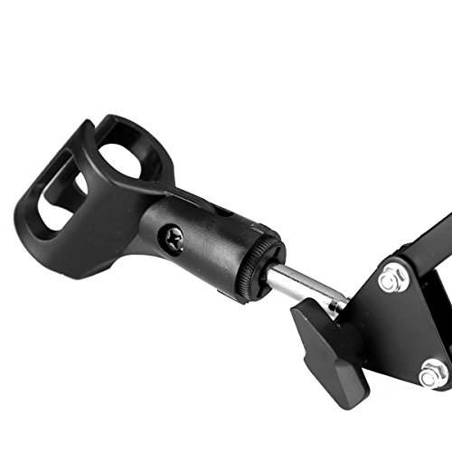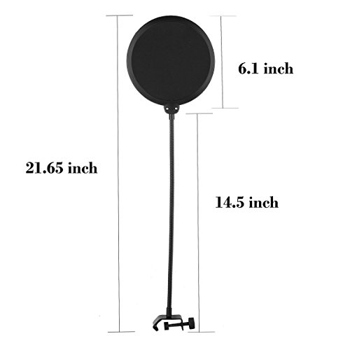 -. Feature : Material of the Scissor arm: metal, which is work with blue snowball ice, Blue Yeti, rode nt-usb, Bird UM1 / Microphone arm with solid gripping clamp, can strongly clip to any desktop up to 1.7"/4.5cm thic, max load: Approx 53oz / 2KG / This mic stand with super-strong sP.R.Ing you can easily and adjust the suitable angle & height to show your perfect voice / Pop filter with double nylon net prevent popping, flexible metal gooseneck and adjustable swivel mount / Mic boom arm suitable for any stores, families, stages, studios, broadcasting and TV stations, etc
