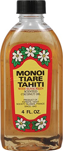 Studio : Monoi Tiare Tahiti Publisher : Monoi Tiare Tahiti Binding : Health and Beauty Product Description A blend of pure coconut oil and sunscreen, delicately scented with the essence of Tiare, Tahitian Gardenia. The sunscreen filters out burning rays, enhancing the abilities of coconut oil to attract the deep tanning ray's of the sun. 0