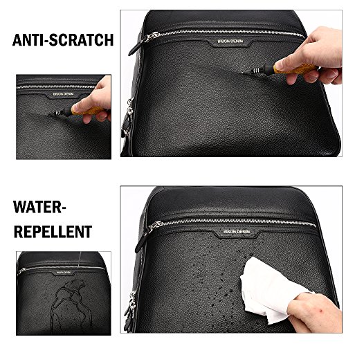 -. Title : BISON DENIM Multipurpose Leather Laptop Backpack Travel Hiking Daypack Casual School Bag Book Bags Rucksack for Men And Women