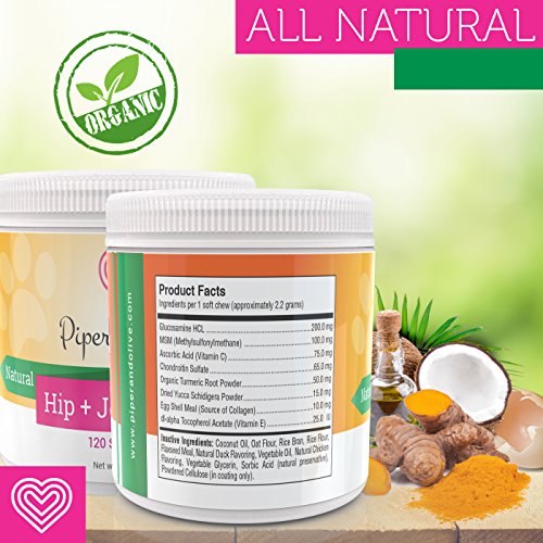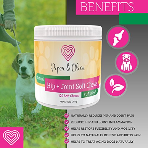 Piper and Olive Glucosamine Hip and Joint Supplement for Dogs is an amazing new Glucosamine supplement. These great tasting soft chews help every dog lover to naturally reduce hip and joint pain and helps to naturally relieve arthritis pain in older dogs and prevents osteoarthritis in younger, athletic dogs.
