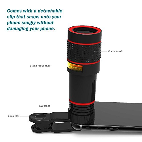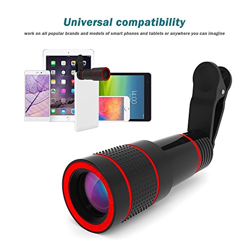 Specifications: Magnification: 12X Field of view: 70 degree Lens barrel: 30x75mm Lens weight: 42g Objective lens diameter: 20mm Compatible Model: Apple iPhones, Samsung and other smart phones