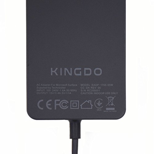 -. Binding : Electronics -. Brand : KingDo -. EAN : 0610822503698 -. Feature : Designed to match your Microsoft Surface Book, Surface Pro 3 and Surface Pro 4. / KINGDO 65W Power Supply quickly recharges the battery and the USB port allows you to charge another device such as your phone at the same time. / Input: 100-240V 50/60 Hz ; Output:15V-4A 65W; USB Port 5V-1A 5W. / Model:EADP-1706,Come with 6Ft Power Cord Cable and a storage pouch bag. / 1 Year Warranty with Replacement Coverage. -. Label : KINGDO -. Manufacturer : KINGDO -. PackageQuantity : 1 -. ProductGroup : PC Accessory -. ProductTypeName : COMPUTER_COMPONENT -. Publisher : KINGDO -. Studio : KINGDO -. Title : KINGDO Surface Power Supply Adapter 65W 15V 4A for Microsoft Surface Book Surface Pro 3 & Pro 4 with 6Ft Power Cord Model 1706 -. UPC : 610822503698