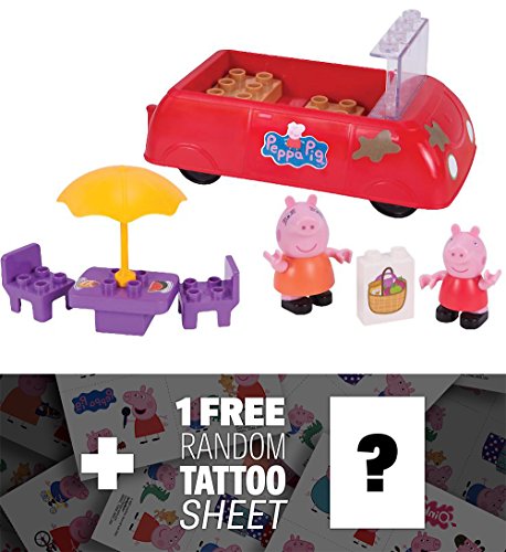 -. Title : Peppa Pig's Red Car 15-Piece Play Set + 1 Official Peppa Pig Mini-Tattoo Sheet Bundle