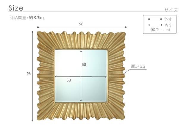 サイズ(cm):本体-幅98x高さ98x奥行5.3cm・約9.3kg、ミラー内寸-58x58cm